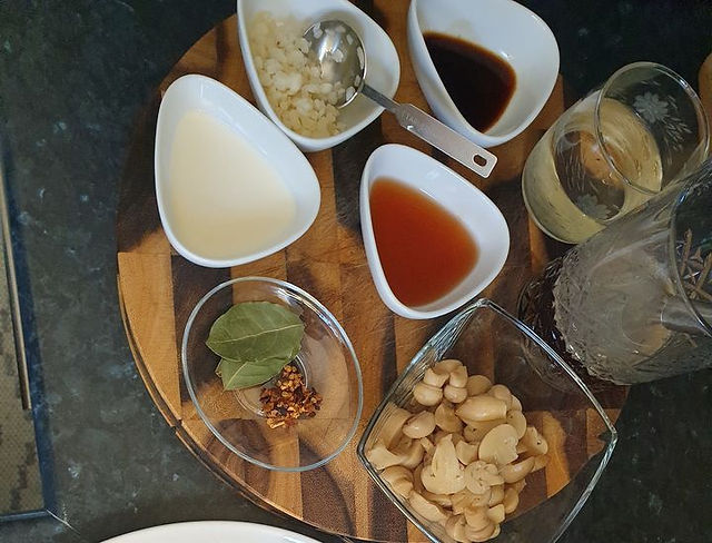 . Allow to cook about 10 minutes stirring frequently or until reduced by half and thick. Remove meat from marinade and brown on both sides. Mix in the pepperparsley and bay leafforming a paste.